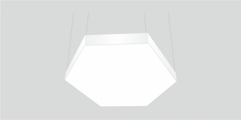 Светодиодный светильник в виде гексагона LiNE-PRO мощностью 100 Вт 800 мм изготовлен из алюминиевого основания, с установленными на него светодиодными модулями. Возможна различная цветовая температура - 3000К, 4000К, 5000К, 6000К. Боковины могут быть изготовлены из плотного ПВХ различного цвета, на выбор или светотехнического акрила и выполнять функцию рассеивателя. Блок питания внутри корпуса светильника. Монтаж на тросовых подвесах или непосредственно к потолку или стене.