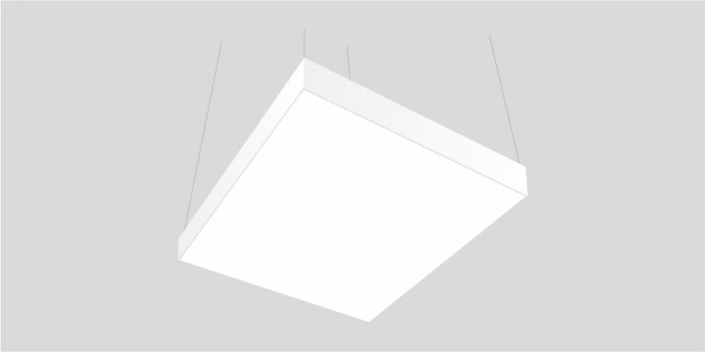 Светодиодный светильник в виде квадрата LiNE-PRO мощностью 360 Вт и 1800 мм изготовлен из алюминиевого основания, с установленными на него светодиодными модулями. Возможна различная цветовая температура - 3000К, 4000К, 5000К, 6000К. Боковины могут быть изготовлены из плотного ПВХ различного цвета, на выбор или светотехнического акрила и выполнять функцию рассеивателя. Блок питания внутри корпуса светильника. Монтаж на тросовых подвесах или непосредственно к потолку или стене.