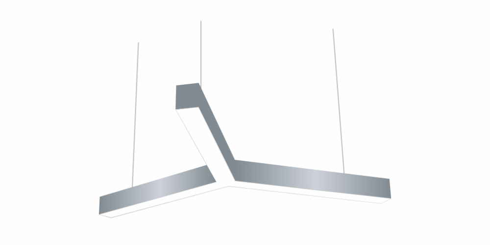 Светодиодный Лучевой светильник LiNE-Pro 3х750mm 80W 3000K серый предназначен для накладного или подвесного монтажа на тросовые подвесы. Изготовлен из сплошного сварного алюминиевого профиля в виде буквы «Y». Высота установки светильника регулируется подвесом с цанговым тросовым зажимом и может варьироваться от 0,05 метра до 4 метров от основного потолка. Светильник имеет равномерную засветку по всей площади рассеивателя. Источник питания находится внутри корпуса. Торцевые заглушки входят в комплект. Возможно изготовление светильника с магистральной проводкой для соединения нескольких светильников в сплошную конструкцию.
