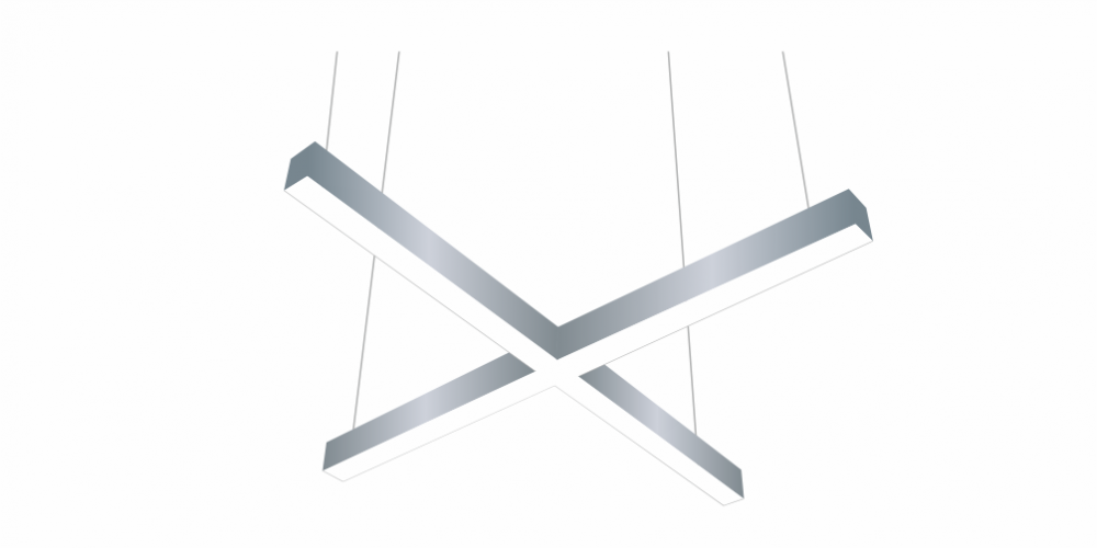 Светодиодный Лучевой светильник LiNE-Pro 4х500mm 80W 5000K серый предназначен для накладного или подвесного монтажа на тросовые подвесы. Изготовлен из сплошного сварного алюминиевого профиля в виде буквы «Х» (крестом). Высота установки светильника регулируется подвесом с цанговым тросовым зажимом и может варьироваться от 0,05 метра до 4 метров от основного потолка. Крестовой светильник имеет равномерную засветку по всей площади рассеивателя. Источник питания находится внутри корпуса. Торцевые заглушки входят в комплект. Возможно изготовление светильника с магистральной проводкой для соединения нескольких светильников в сплошную конструкцию.