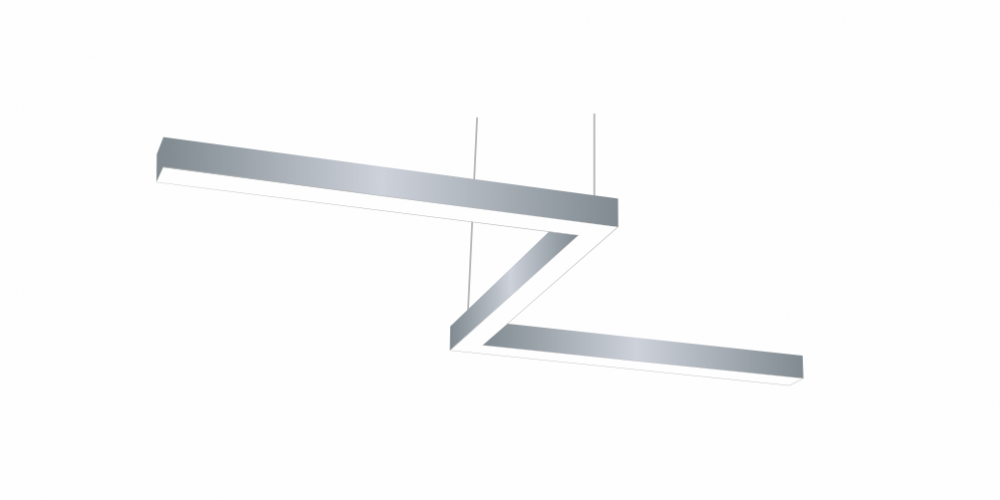 Фигурный светодиодный Светильник Зигзаг LiNE-Pro 3х500mm 30W 6000K серый предназначен для накладного или подвесного монтажа на тросовые подвесы. Изготовлен из сплошного сварного алюминиевого профиля в виде зигзага. Высота установки светильника регулируется подвесом с цанговым тросовым зажимом и может варьироваться от 0,05 метра до 4 метров от основного потолка. Светильник Зигзаг имеет равномерную засветку по всей площади рассеивателя. Источник питания находится внутри корпуса. Торцевые заглушки входят в комплект. Возможно изготовление светильника с магистральной проводкой для соединения нескольких светильников в сплошную конструкцию