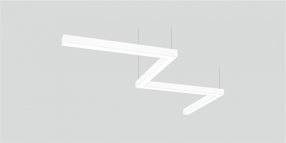 Фигурный светодиодный Светильник Зигзаг LiNE-Pro 4х500mm 40W 6000K белый предназначен для накладного или подвесного монтажа на тросовые подвесы. Изготовлен из сплошного сварного алюминиевого профиля в виде зигзага. Высота установки светильника регулируется подвесом с цанговым тросовым зажимом и может варьироваться от 0,05 метра до 4 метров от основного потолка. Светильник Зигзаг имеет равномерную засветку по всей площади рассеивателя. Источник питания находится внутри корпуса. Торцевые заглушки входят в комплект. Возможно изготовление светильника с магистральной проводкой для соединения нескольких светильников в сплошную конструкцию