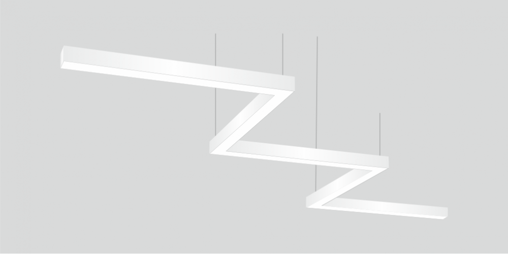 Фигурный светодиодный Светильник Зигзаг LiNE-Pro 5х500mm 90W 6000K белый предназначен для накладного или подвесного монтажа на тросовые подвесы. Изготовлен из сплошного сварного алюминиевого профиля в виде зигзага. Высота установки светильника регулируется подвесом с цанговым тросовым зажимом и может варьироваться от 0,05 метра до 4 метров от основного потолка. Светильник Зигзаг имеет равномерную засветку по всей площади рассеивателя. Источник питания находится внутри корпуса. Торцевые заглушки входят в комплект. Возможно изготовление светильника с магистральной проводкой для соединения нескольких светильников в сплошную конструкцию