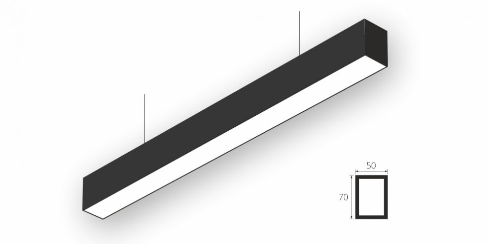 Линейный модульный светодиодный Подвесной светильник LiNE-Pro 70x50 750mm 18W 5000K Черный предназначен для подвесного монтажа на тросовые подвесы. Изготовлен из алюминиевого профиля длиной 750 мм, мощностью 18 Вт c цветовой температурой 5000 K, цвет корпуса Черный. Светильники соединяются в сплошную линию с помощью комплекта линейного соединения и сплошной магистральной проводки. Светильник имеет равномерную засветку по всей площади рассеивателя. Источник питания находится внутри корпуса.